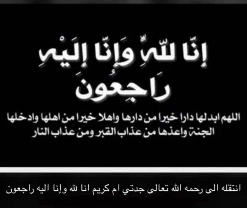 محمد الصلال تذاكر البريمرليغ On Twitter إنا لله وإنا إليه راجعون البقاء لله انتقلت الى رحمة الله تعالى جدتي الغاليه ام كريم وسوف يوارى جثمانها الثرى اليوم بعد صلاة العصر مقبره الصليبخات