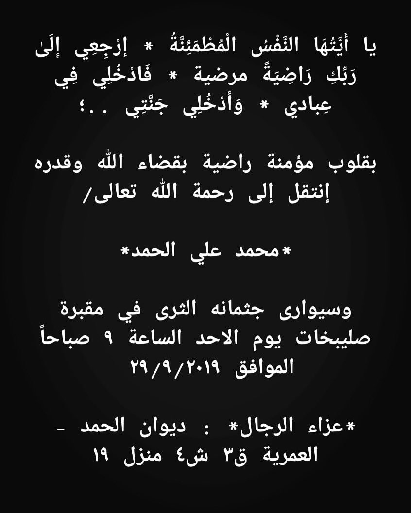 عبدالعزيز فهد الحمد On Twitter توفي قبل قليل ولد عمي الغالي محمد علي الحمد انالله وانا البه راجعون الله يرحمك ويغفرلك يابوعلي