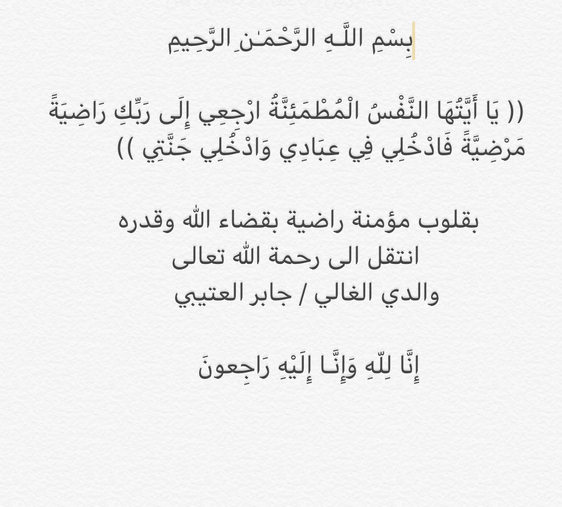 أسامه العبدالعظيم On Twitter بقلوب مؤمنه بقضاء الله وقدره انتقل إلى رحمة الله تعالى والدي الغالي رحمه الله رحمة واسعة واسكنه فسيح جناته وسيصلى عليه اليوم الخميس بعد صلاة العصر في جامع