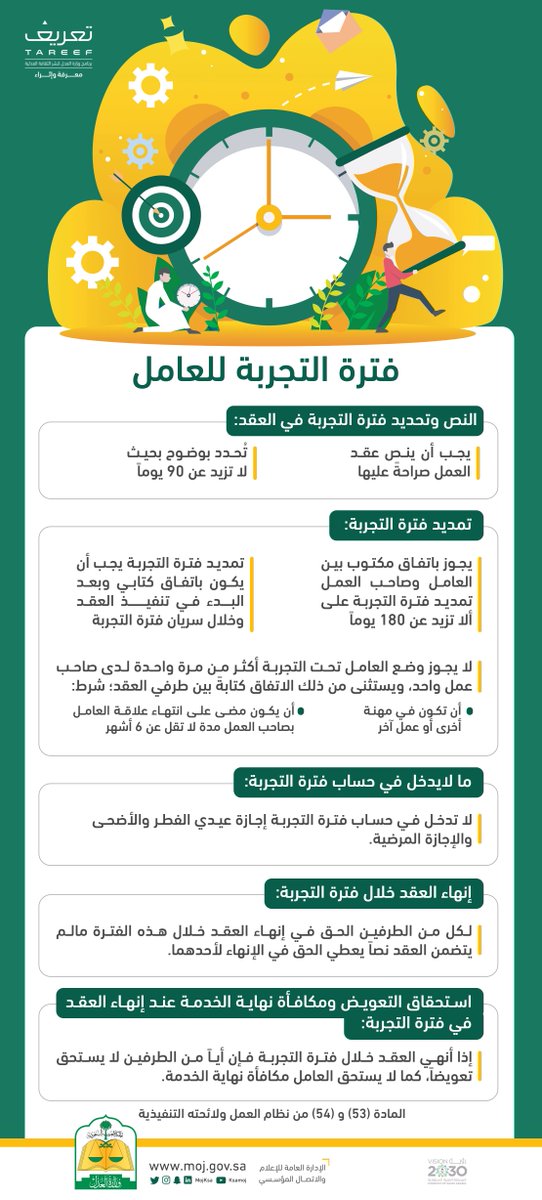 أ حـمـد ا لـمـحـيـمـيـد On Twitter في عقد العمل يحق لاي من طرفيه انهاء العقد خلال فترة التجربة م ٥٣ Oum Retal Http T Co 5emyigqz0p