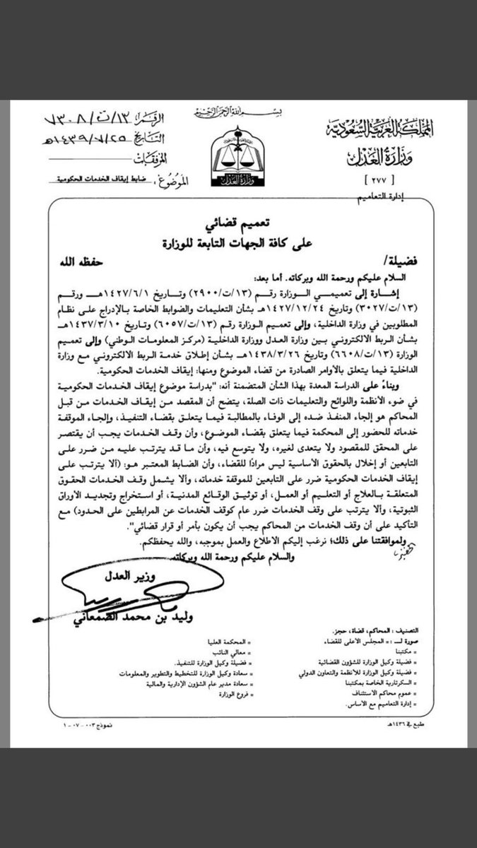 محامي مستشار قانوني On Twitter تعميم لوزير العدل إيقاف الخدمات الحكومية للممتنعين عن الحضور لا يشمل الحسابات البنكية المحاكم القضاء العدل المحامي السعوديه المحاماة Https T Co Mxftcsb3e5